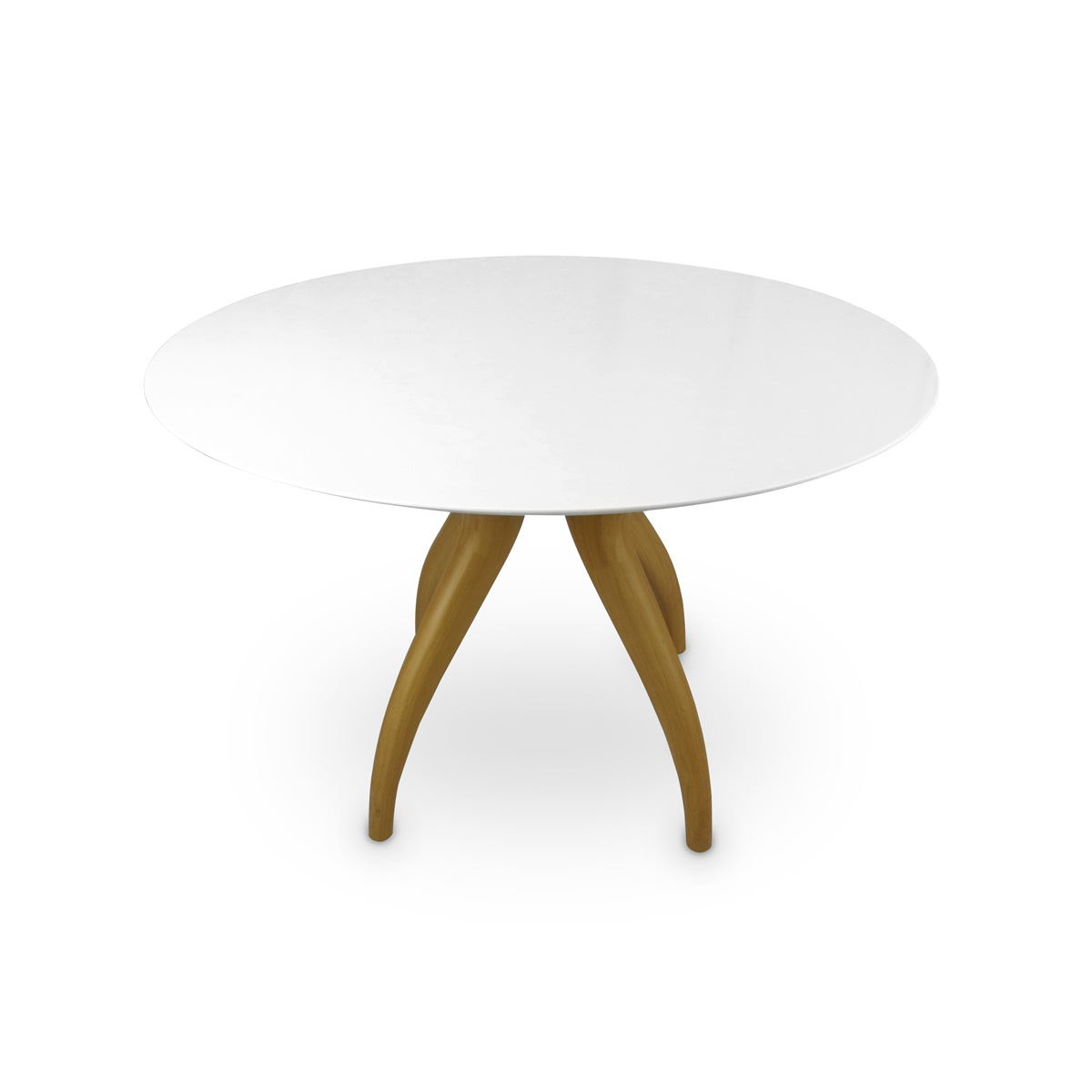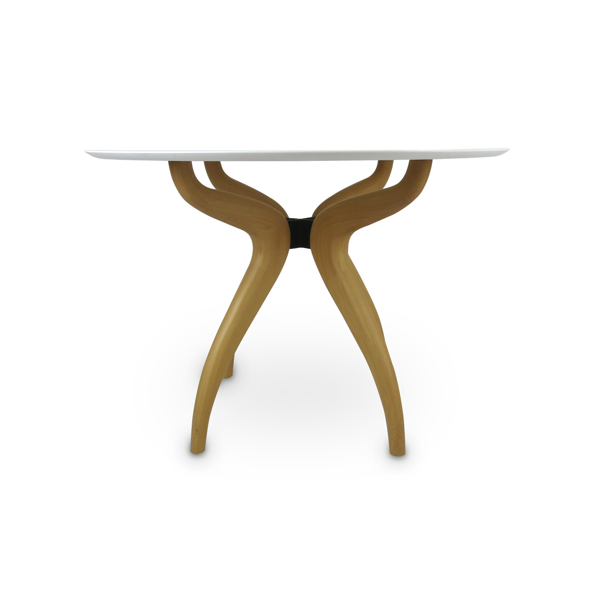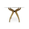 Featuring a stylish wood veneer base, this luminous China white stone table top glistens under a dining lights. A versatile design that can be used in a breakfast nook or dining room.