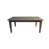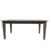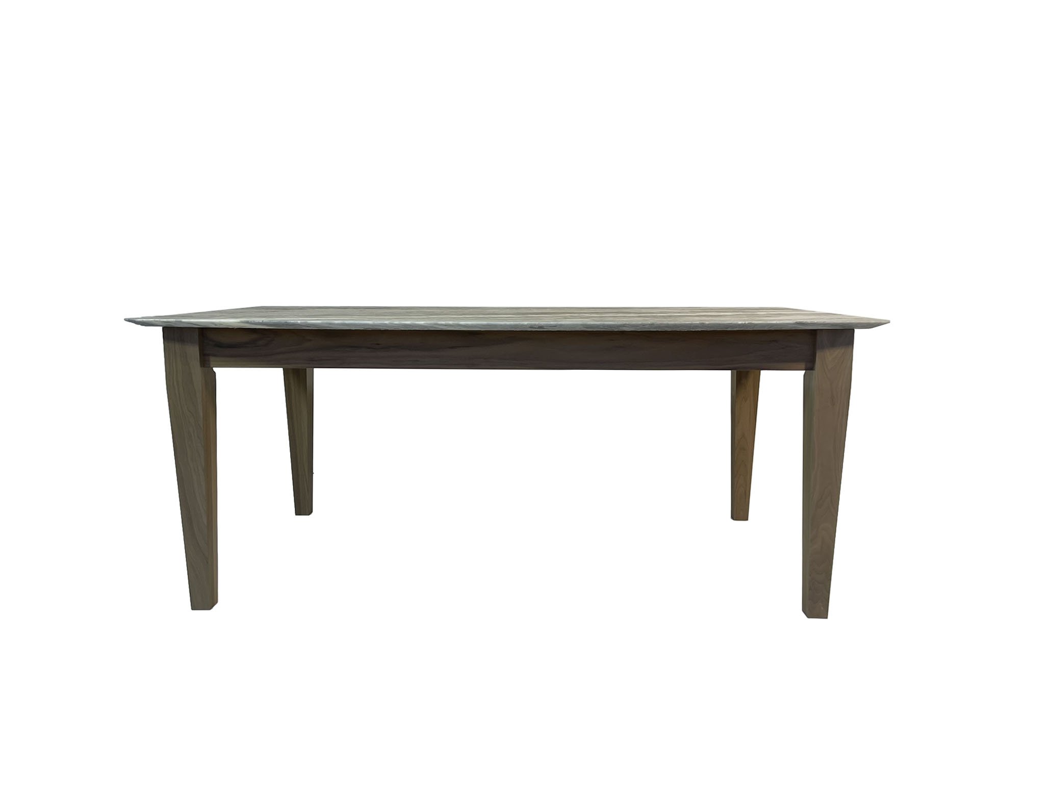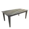 Natural stone quartz table with a stained wood base and a back beveled edge detail.