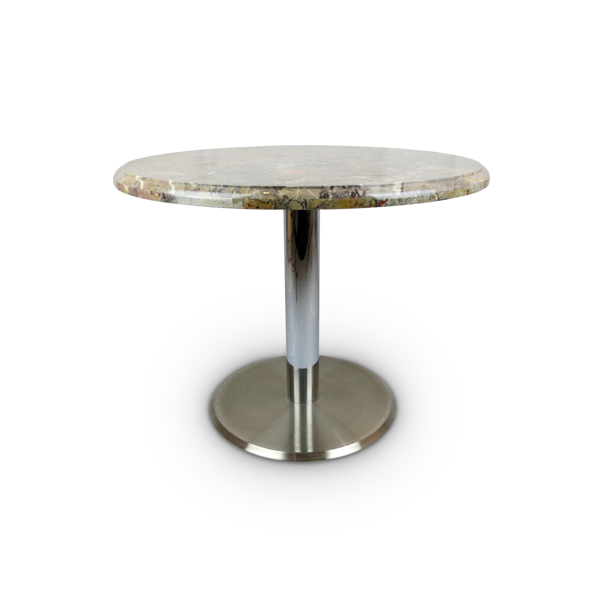 This beautiful colorful table with warmth, elegance, and fabulous charm is made of stone from an Italian quarry. It can be made in both a polished and honed version.
